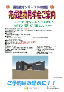 見どころ ①平屋30坪 ②耐震等級3 ③スキップフロア ④無垢フローリング ⑤UA値0.46(0.6以下が基準値)